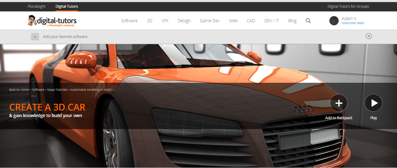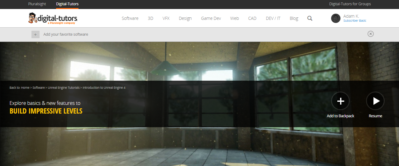 I started out with the Introduction to Unreal Engine 4 tutorial, but was only a few videos in before I hit a frustrating roadblock - sample tutorial assets are not included in the basic subscription, only the advanced subscription. It was at this point that I decided that I couldn't get very far just using primitive objects (cubes, spheres, etc) to build my environments and I also couldn't rely on sample assets forever. I have grand dreams of building massive spaceports and sprawling landscapes, so I might as well jump in now. If I can't make 3d mesh models, I'm stuck using free assets or buying them from someone else. This led me to dig into some of the other tutorials on Digital-Tutors, and I quickly discovered that they have videos for all of the best graphics related software.